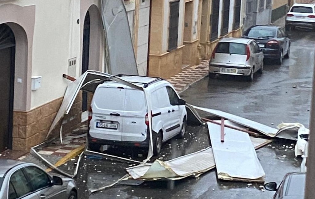 También se descolgaron varios toldos en colegios y carpas municipales, así como caídas de cierres de terrazas y cornisas. La más espectacular fue la de la calle Giralda, en Fuente Palmera. Afortunadamente ninguna incidencia provocó daños personales.