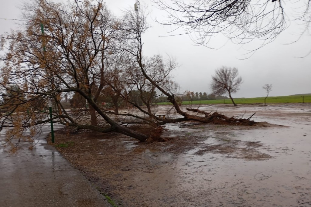 El viento derribó algunos árboles en parques de El Villar, Los Silillos y La Herrería, así como en la circunvalación de Fuente Palmera y en la carretera a su paso por La Herrería, las cuales estuvieron cortadas mientras los trabajadores del Ayuntamiento realizaron las labores de retirada.