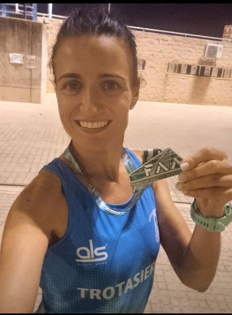 Pero lo más notable es que la atleta colona venía de subirse el día anterior en lo más alto del podio en su categoría de máster 40 en el Campeonato de Andalucía de 5.000 metros con una marca de 19’38». Corrió bajo las siglas del Trotasierra al ser una competición federada.