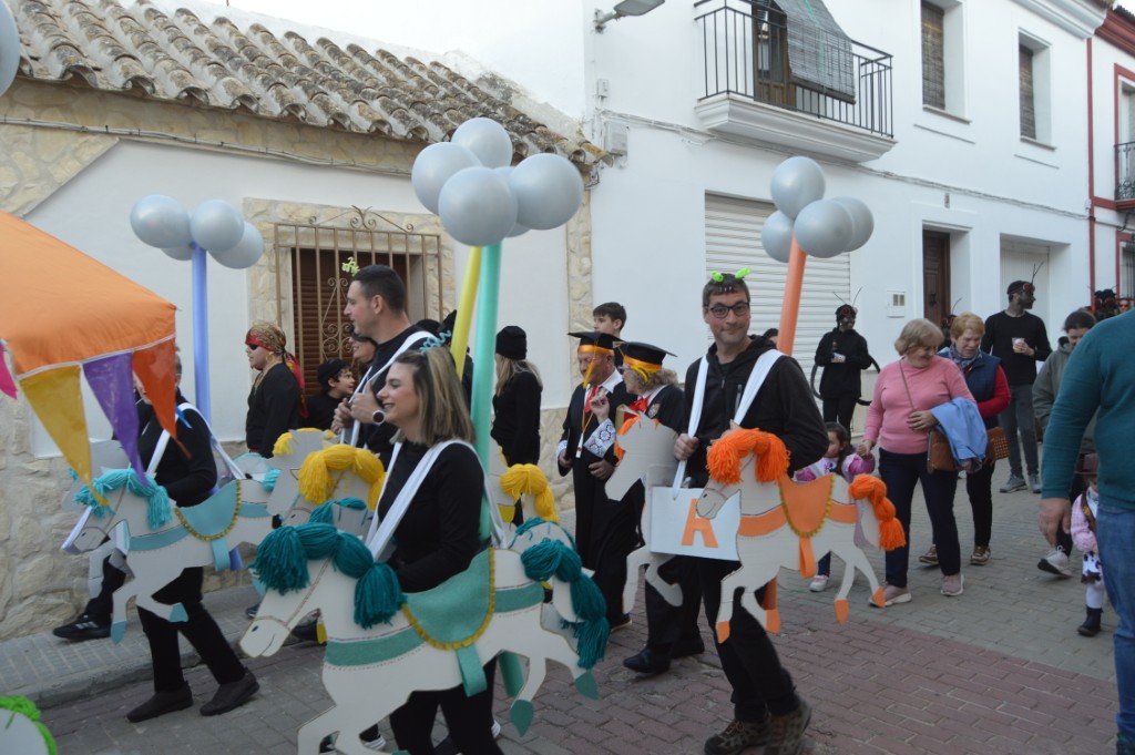Este comenzó pasadas las 18.00 h., animado por la charanga, Los Elegantes. Se vieron disfraces desde los más tradicionales (piratas, arlequines, pistoleras, hippies, excursionistas de safari…), hasta otros más originales y trabajados como los tres ganadores del concurso.