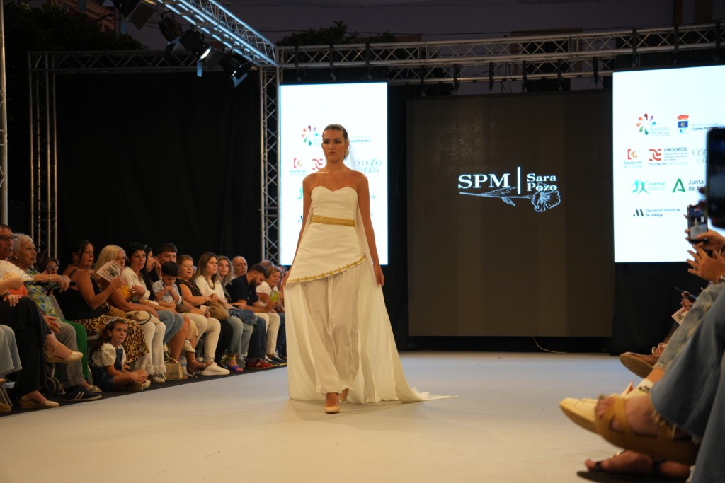 Les siguió en la pasarela la sevillana Sara Pozo, ganadora del Certamen de Jóvenes Diseñadores de 2024, lo cual le otorgaba la oportunidad de desfilar en esta edición de Fuente Palmera de Boda.