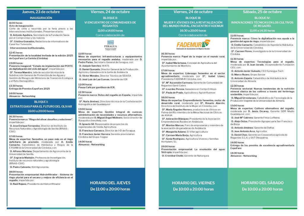 Por otro lado, hemos ampliado el perfil de visitantes de ExpoFare para llegar a un sector de agricultores que quizá no asistía a la feria por ser demasiado técnica y también para los vecinos y vecinas en general. Por lo tanto es un evento abierto para todos los públicos. Para ello contamos este año con la zona Agrifood Demo para darle valor a los productos agroalimentarios. En la misma tendremos expositores locales como Almondterra, Bodegas Palhens, Obrador Esther Cabello, horticultores, etc.; también las naranjas y los aceites bajo la marca del Valle del Guadalquivir, donde hay productores colonos; habrá degustaciones, showcooking con importantes chefs de la provincia, charlas sobre nutrición, etc.