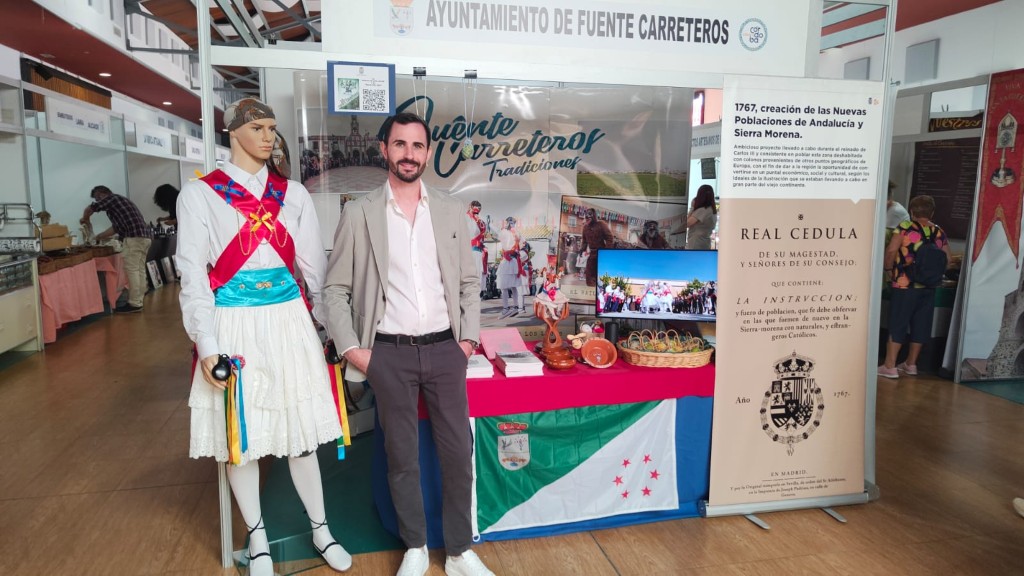 Fuente Carreteros está participando activamente en la Feria del Lechón Ibérico. Por un lado, con un stand en el recinto expositivo donde muestra al público sus tradiciones más arraigadas (los huevos pintados, la Danza de Los Locos y el Baile del Oso).