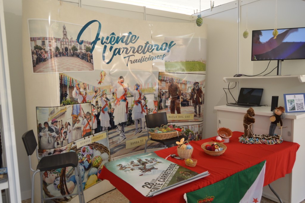 En el expositor de Fuente Carreteros sobresalía lógicamente la promoción de la Danza de Los Locos y el Baile del Oso, así como la tradición de los Huevos Pintados. Sobre estos últimos destacaba el detalle de las bolsistas de encaje como elemento diferenciador con otros municipios.