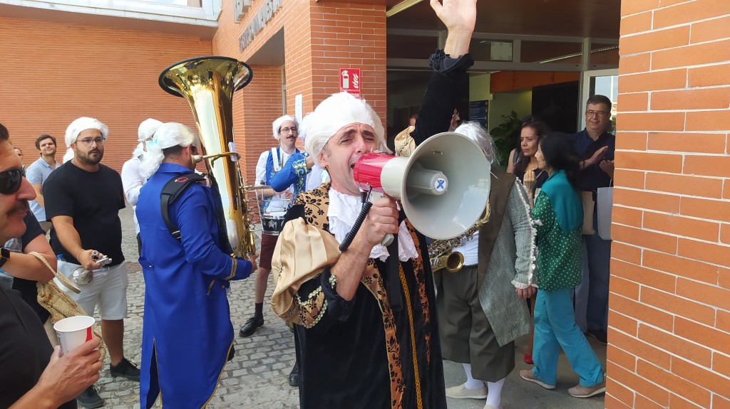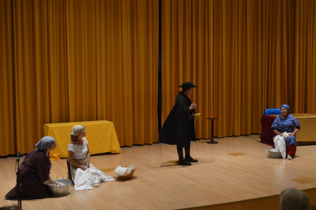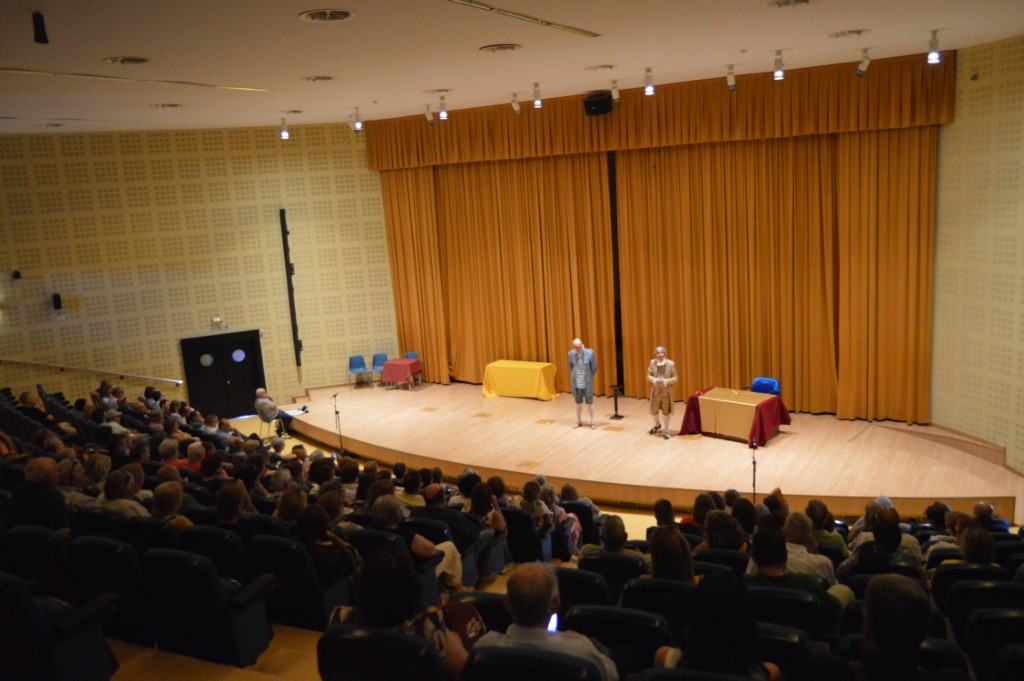 La jornada tuvo como extraordinario colofón la representación en el Paraninfo de la obra «¿Quién va?¿Quién vive? Con ustedes el gran Olavide», a cargo del Taller de Teatro «Cambalache» de Fuente Palmera. Su actuación fue colosal, con la novedad de algún diálogo, y muy aplaudida por el público.