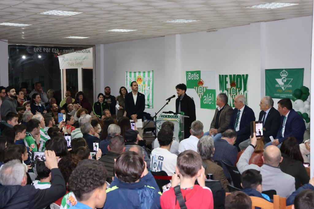 Desde la presidencia de la Peña Bética Colona, Evaristo Guzmán se dirigió a Pablo Fornals para decirle que “desde ahora, además de tu familia de Cañada del Rabadán, aquí tienes otra familia”, además de alabar sus cualidades futbolísticas y su sacrificio que le han llevado a ser el jugador con mejor rendimiento en el Betis en lo que va de temporada.