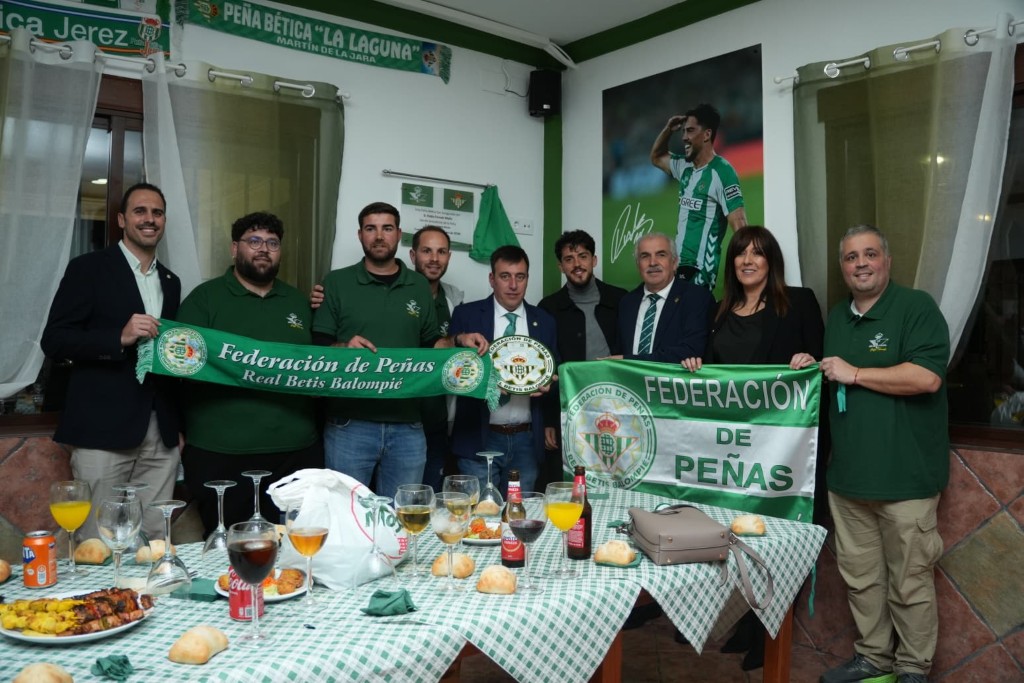 También asistió el presidente de la Federación de Peñas del Real Betis Balompié, Juan de Dios Álvarez, el alcalde de La Colonia, Francisco Javier Ruiz, los concejales y concejalas del equipo de gobierno, Javi Sánchez, Sonia Rovira, Quique González y Laura Sánchez, y la portavoz socialista, Rocío Moyano.