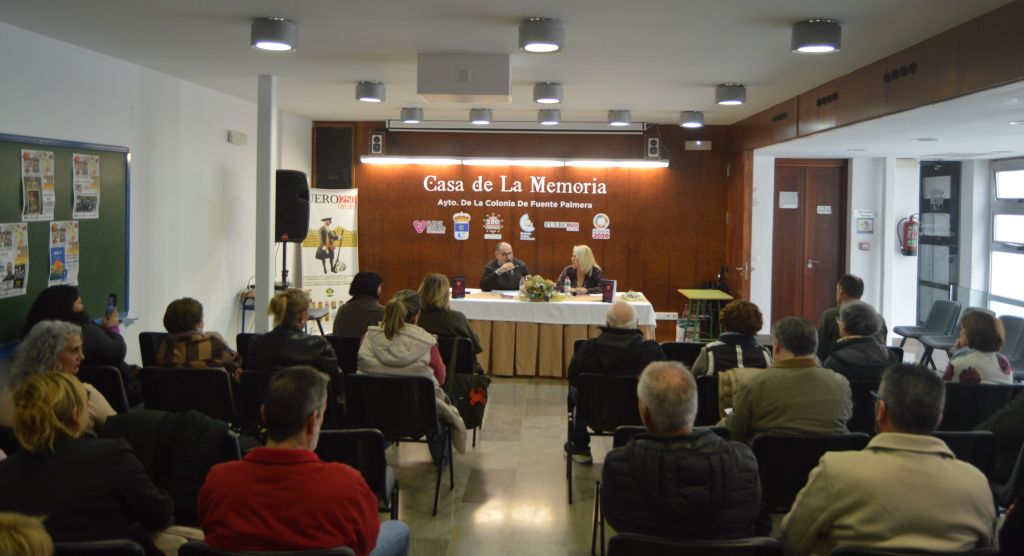 La jornada la abrió y dirigió Quique González, concejal de Cultura del Ayuntamiento de Fuente Palmera, que dio la bienvenida y presentó a la autora ante un público que casi llenó el salón de actos un domingo por la mañana, y con lluvia, horario atípico para este tipo de eventos.