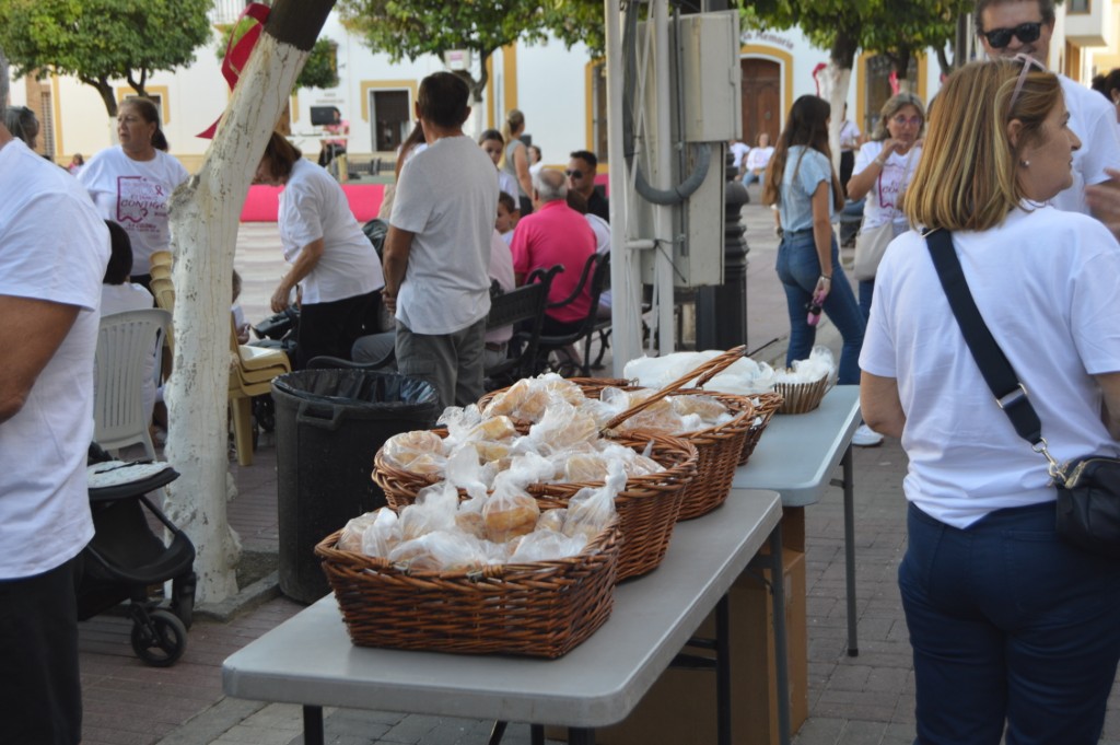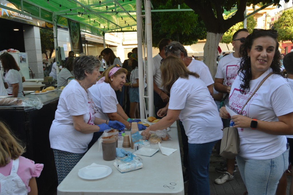 De esta forma, se han vendido unas 1300 camisetas -en poco más de una semana y media-, con el lema, «No estás sola, estamos contigo», y ayer en la Plaza Real se hizo un arroz solidario, se vendieron sopaipas, chocolate, flores, lazos conmemorativos… y se sortearon un jamón donado por Los Fernández, dos garrafas de aceite de Oleogenil y una cesta de chocolatinas por Inferstahl.