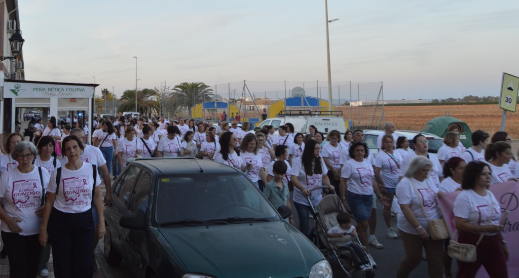 Sobre las 6.30 comenzó la marcha, encabezada por mujeres que tienen actualmente o han pasado el cáncer de mama, junto a directivos de la AECC y representantes municipales encabezados por el alcalde colono.