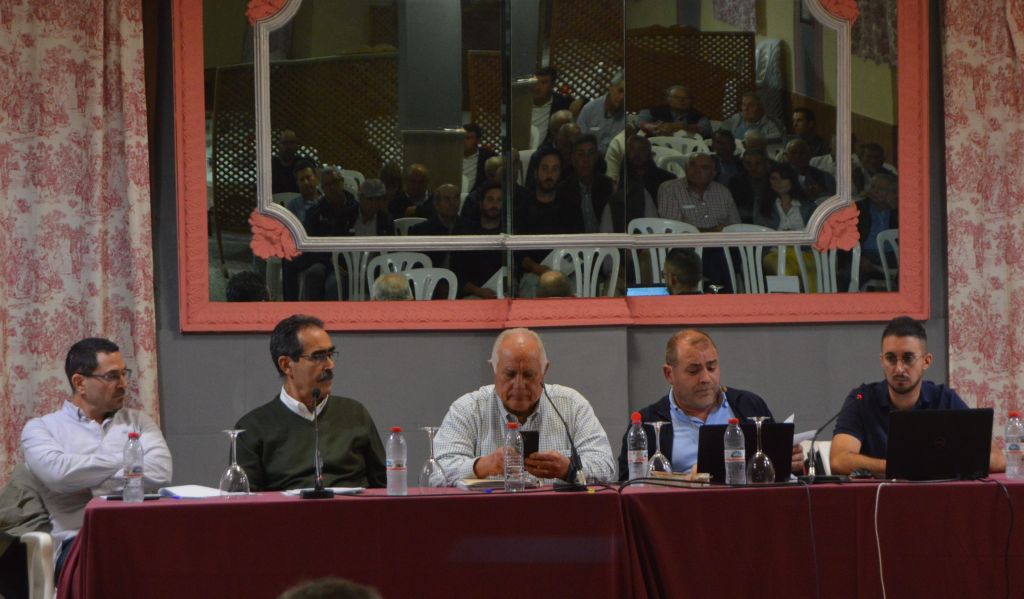 El salón de actos del Bar Domínguez de Cañada del Rabadán ha acogido este 29 de octubre la Junta General Ordinaria de la Comunidad de Regantes de El Villar, la segunda del año tras la celebrada el pasado mes de febrero, presidida por Manuel Vázquez Pérez, presidente de la entidad, y con la asistencia de unos cien comuneros.