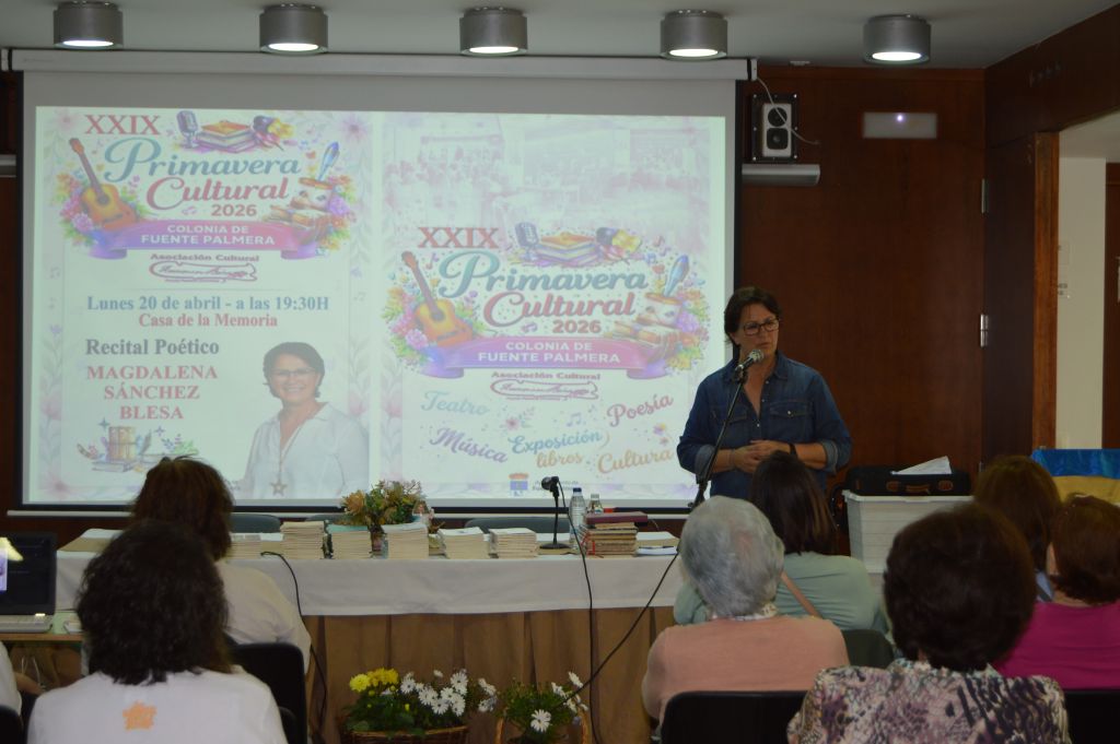 Ayer en Fuente Palmera recitó una serie de poemas sobre la familia, la soledad, la mujer, la muerte, la vida… y un ramillete de corte humorístico. Además, su voz, su forma de entonar tiene la capacidad de embelesar al oyente. El público disfrutó y Magdalena concluyó con un poema mientras daba la mano a todas y cada una de las personas presentes transmitiendo su cercanía y cariño.