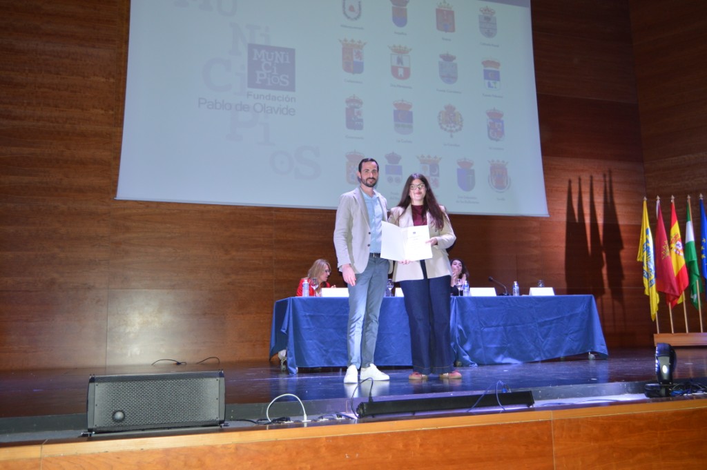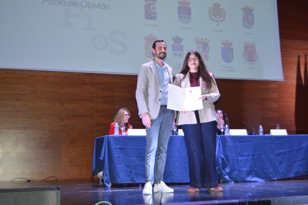 El acto de entrega ha estado presidido por el vicerrector primero de la UPO, José Antonio Sánchez Medina; la teniente de alcalde del Ayuntamiento de Dos Hermanas, Carmen Gil Ortega; la vicerrectora de Relaciones Institucionales, Formación Permanente y Fundaciones de la UPO y vicepresidenta ejecutiva de la Fundación de Municipios, Laura López de la Cruz y la secretaria general de la Universidad, Silvia Mendoza Calderón.