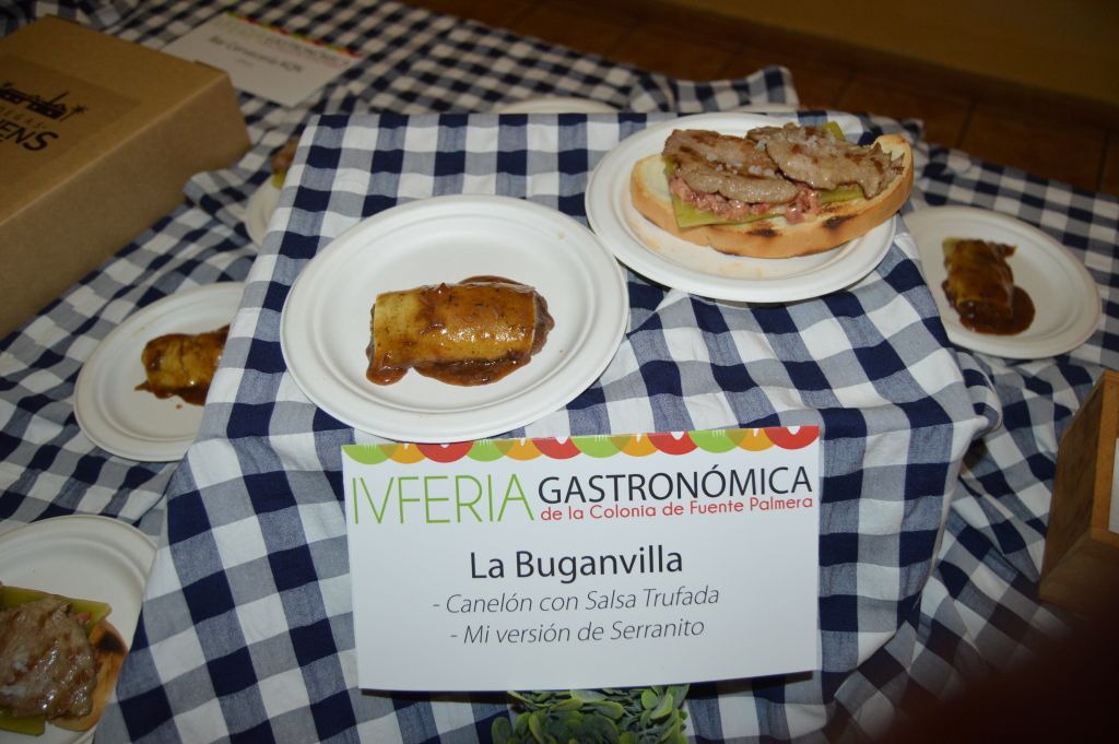 La Buganvilla: Canelón con salsa trufada y Mi versión de serranito.