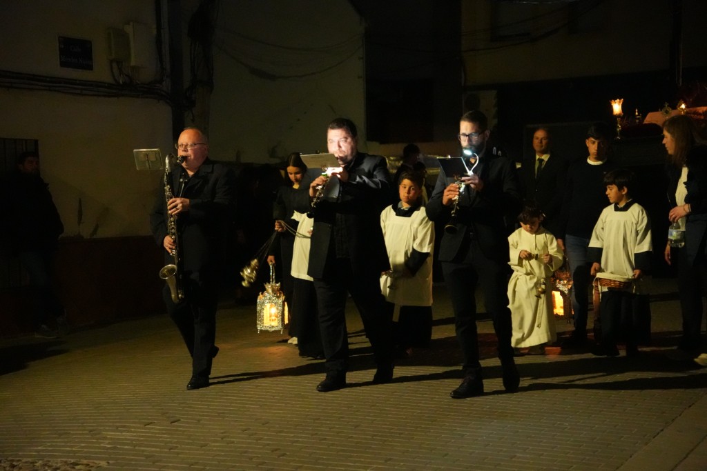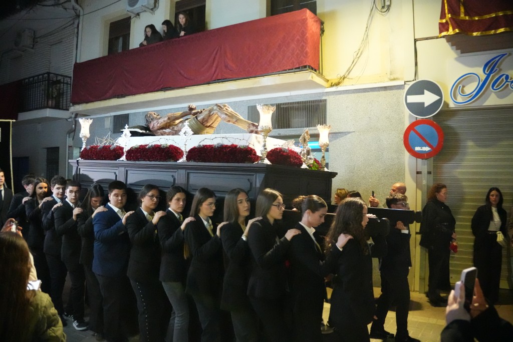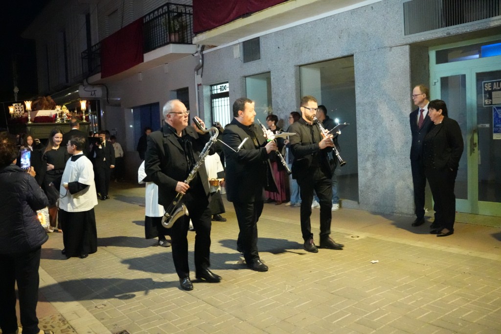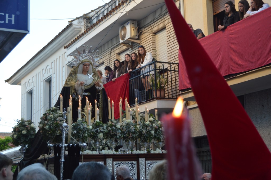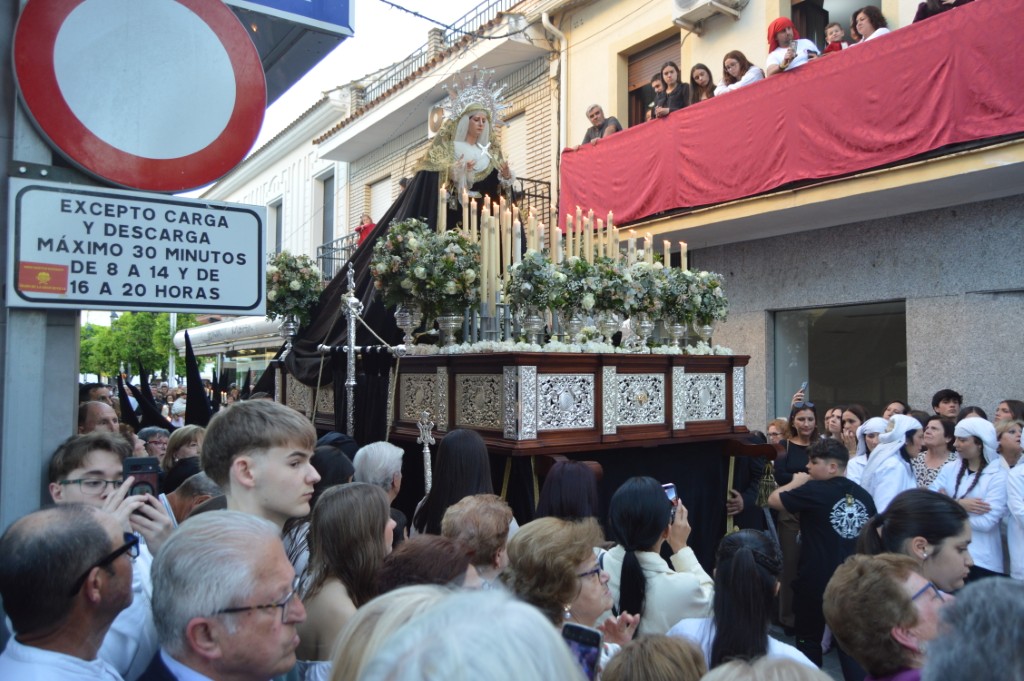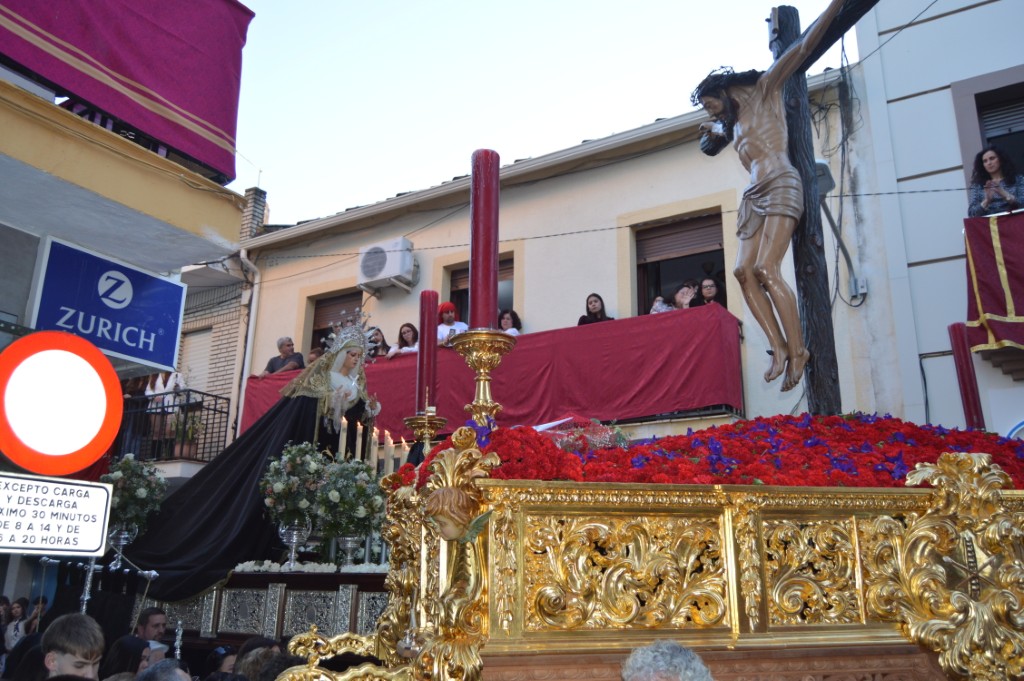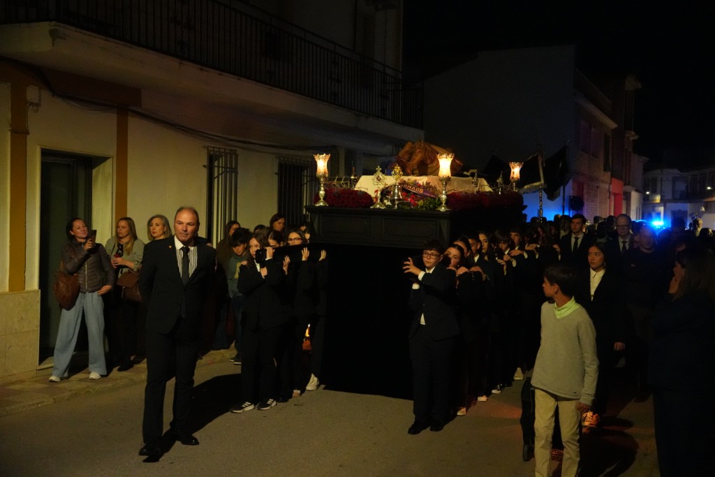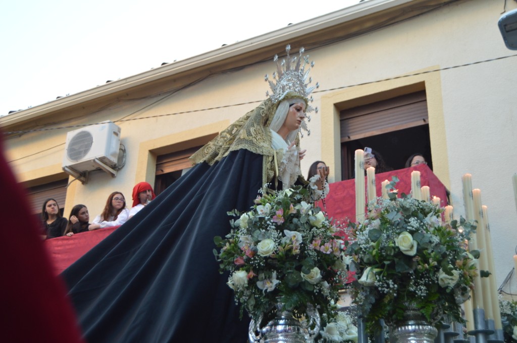 La comitiva de Ntra. Sra. de los Dolores, que salió sobre las 7.30 de la tarde, estuvo acompañada un año más por la Agrupación Musical Ntro. Padre Jesús Cautivo de Villa del Río. El paso se recogería en torno a las 0.20 horas bajo las notas del himno nacional. A ambas imágenes, Cristo y Los Dolores, les dedicó varias saetas Anabel Castillo a lo largo del recorrido.