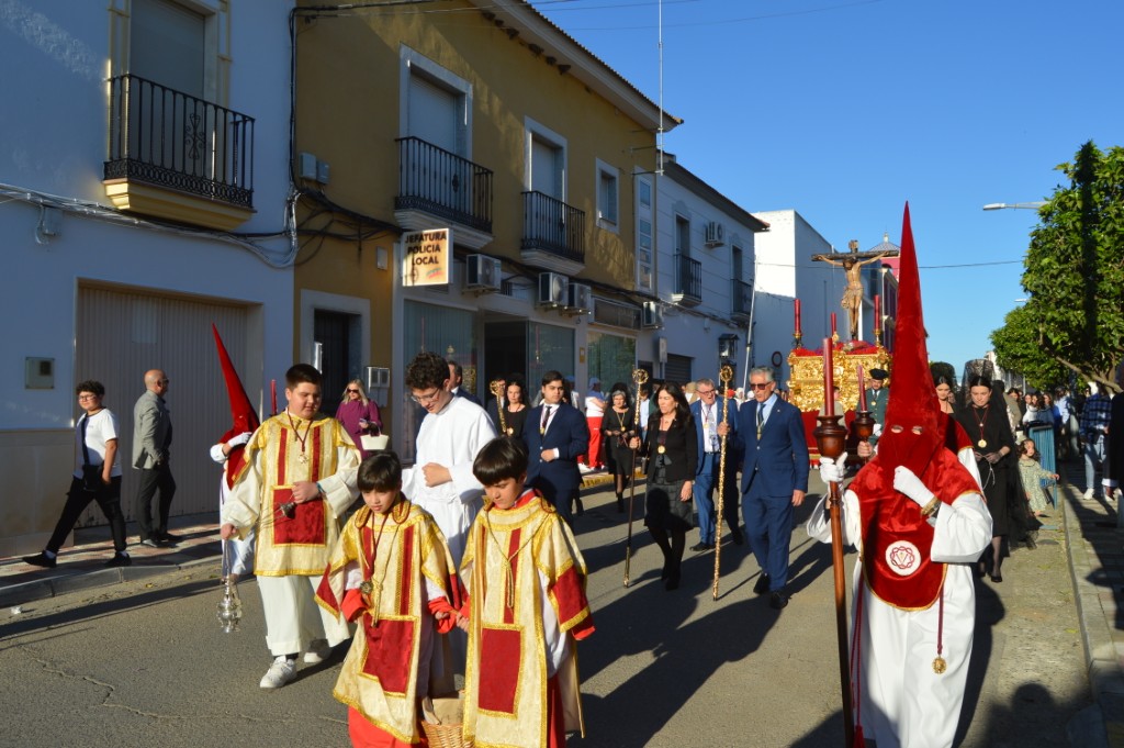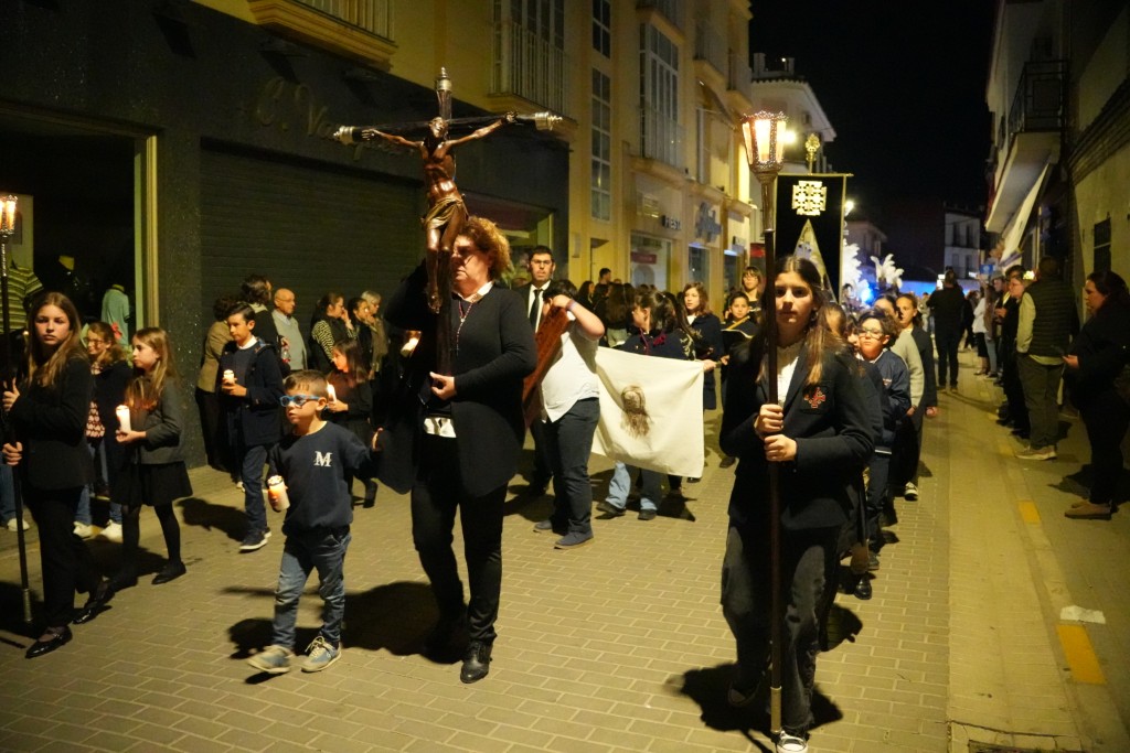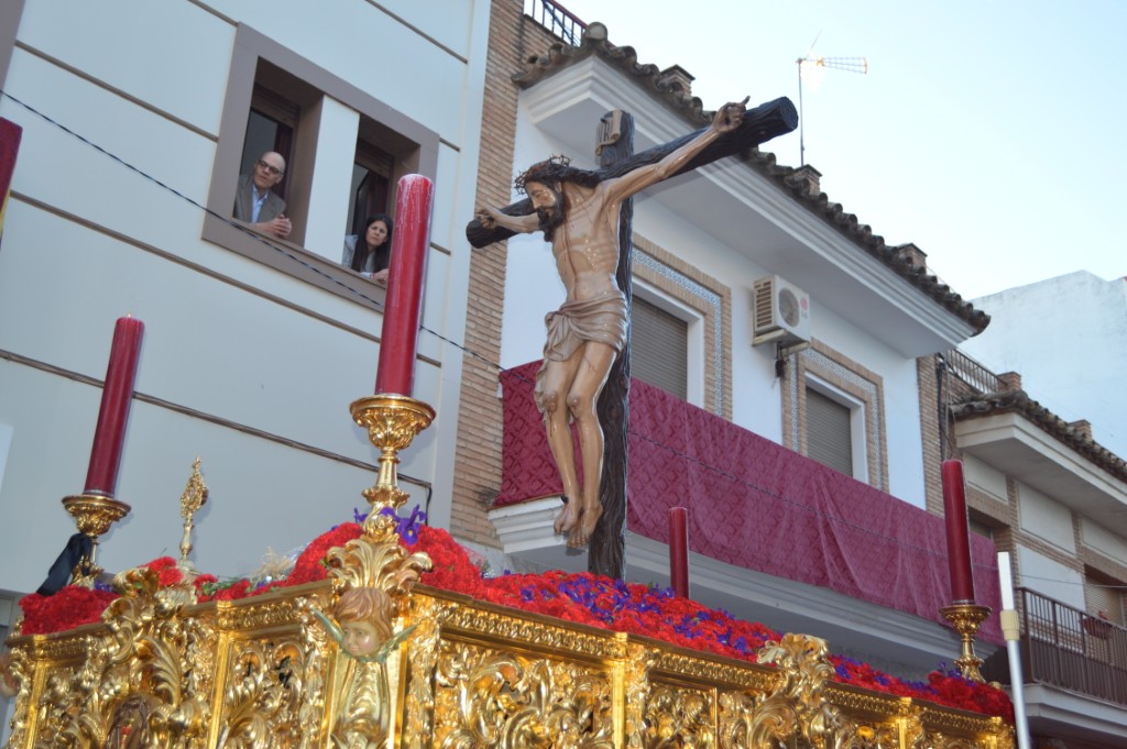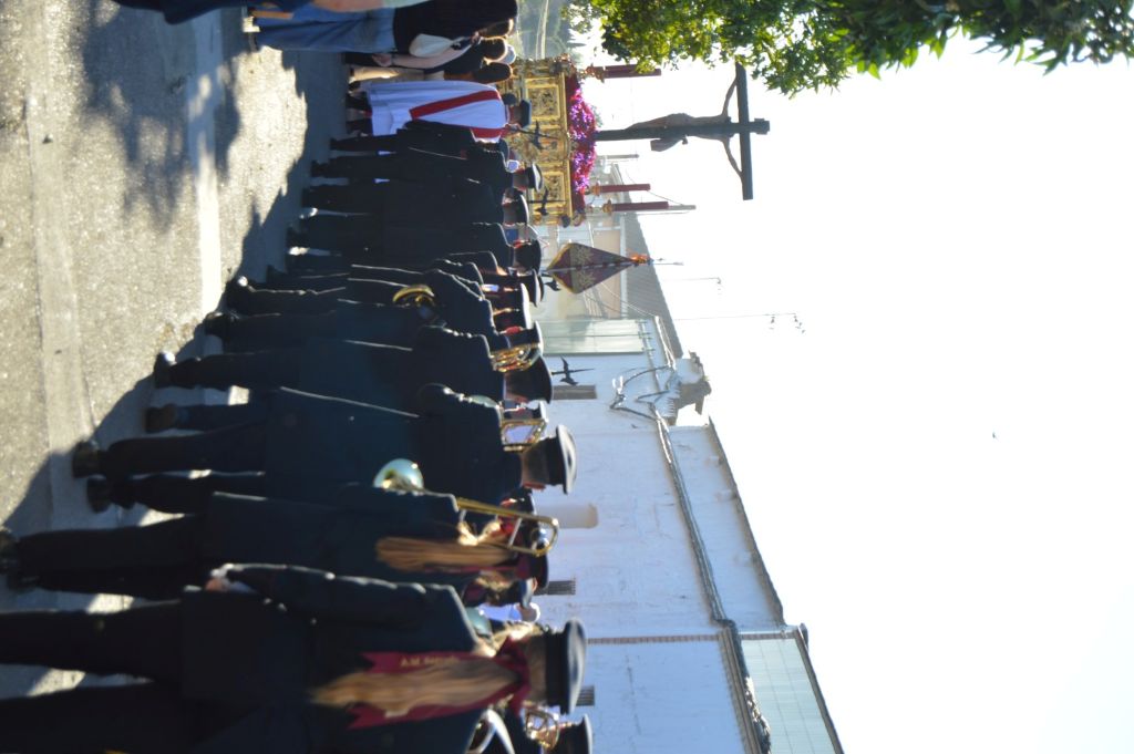 A las 7 de la tarde, con puntualidad inglesa y una plaza llena de público, el Santísimo Cristo de la Sangre realizaba su salida de la Parroquia de la Purísima Concepción bajo los acordes de una banda que demostró un alto nivel, la Agrupación Musical Sagrada Cena de Córdoba.