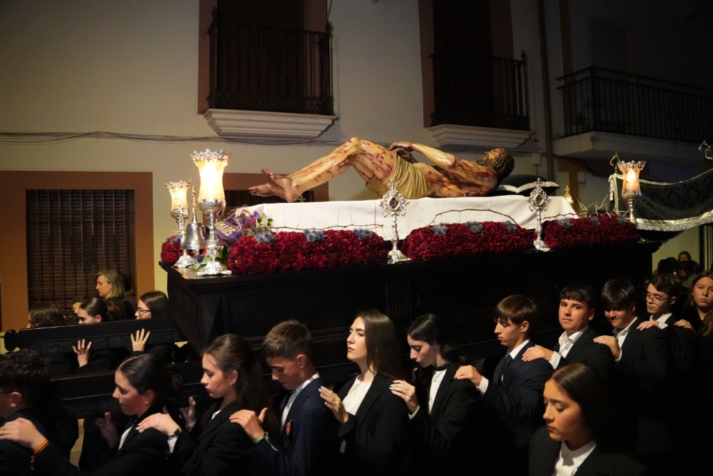 La imponente talla del imaginero sevillano Juan Manuel Miñarro sigue conmoviendo tras doce años, desde que llegó y fue bendecida en 2015. Ochenta años después de que se perdiera la antigua imagen del Santo Entierro.